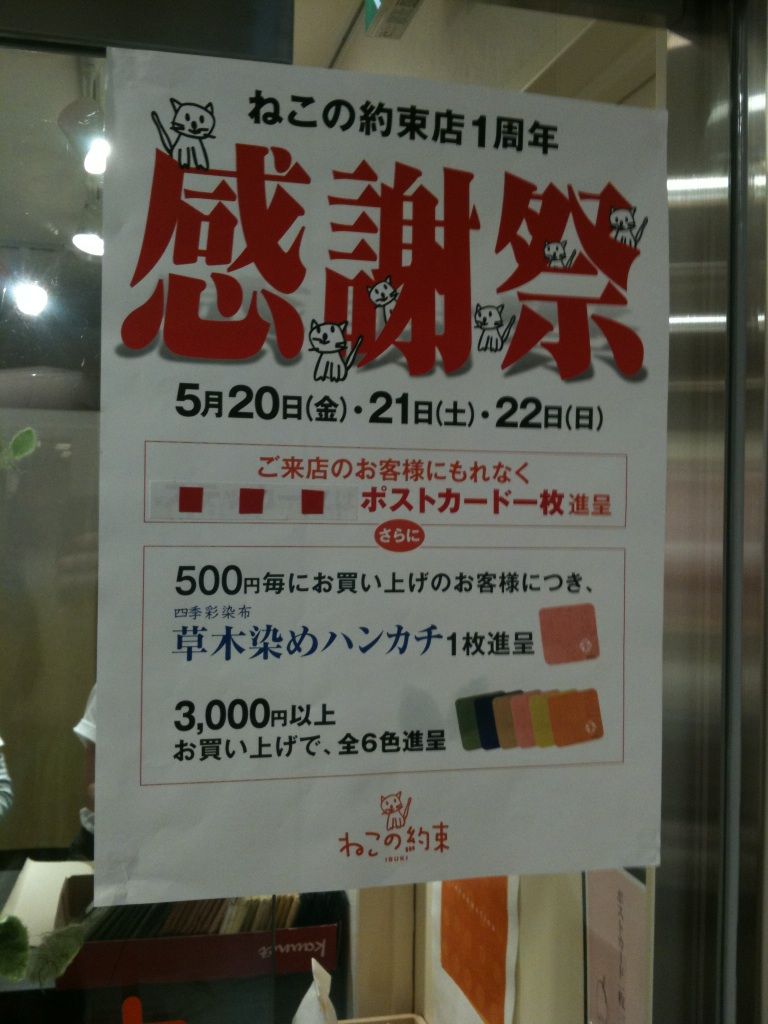 JR岐阜駅に一年ほど前にできた「ねこの約束」。本日から3日間一周年感謝祭なのですー。
