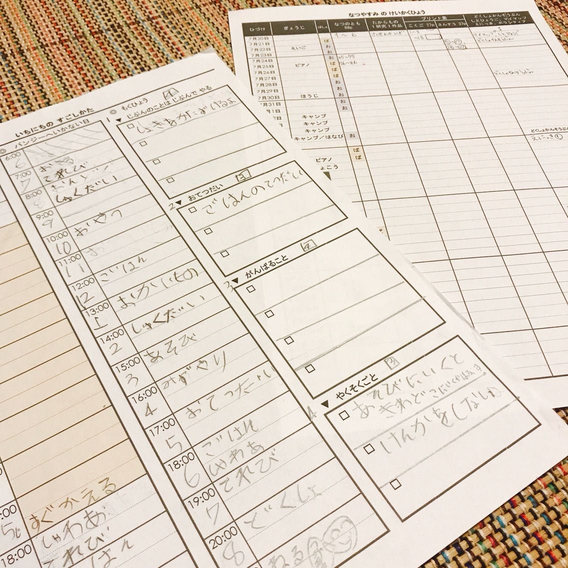 議題は1日のスケジュールと、それぞれの宿題をいつまでに終わらせるかについて。