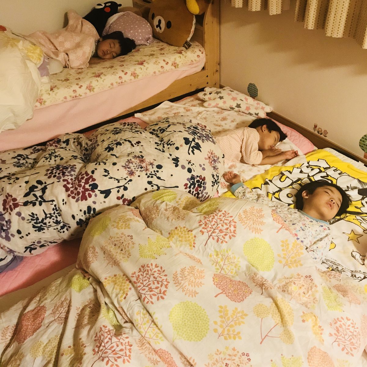子ども3人分、シーツをかけて冬のお布団を出しましたよ。
