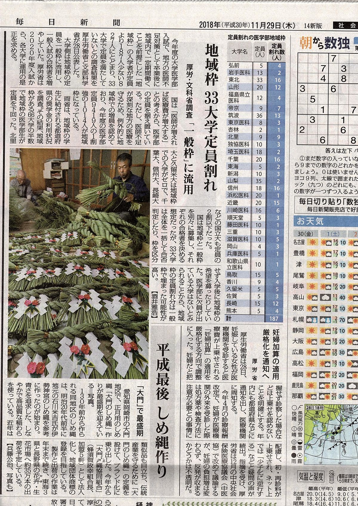 11月29日の毎日新聞